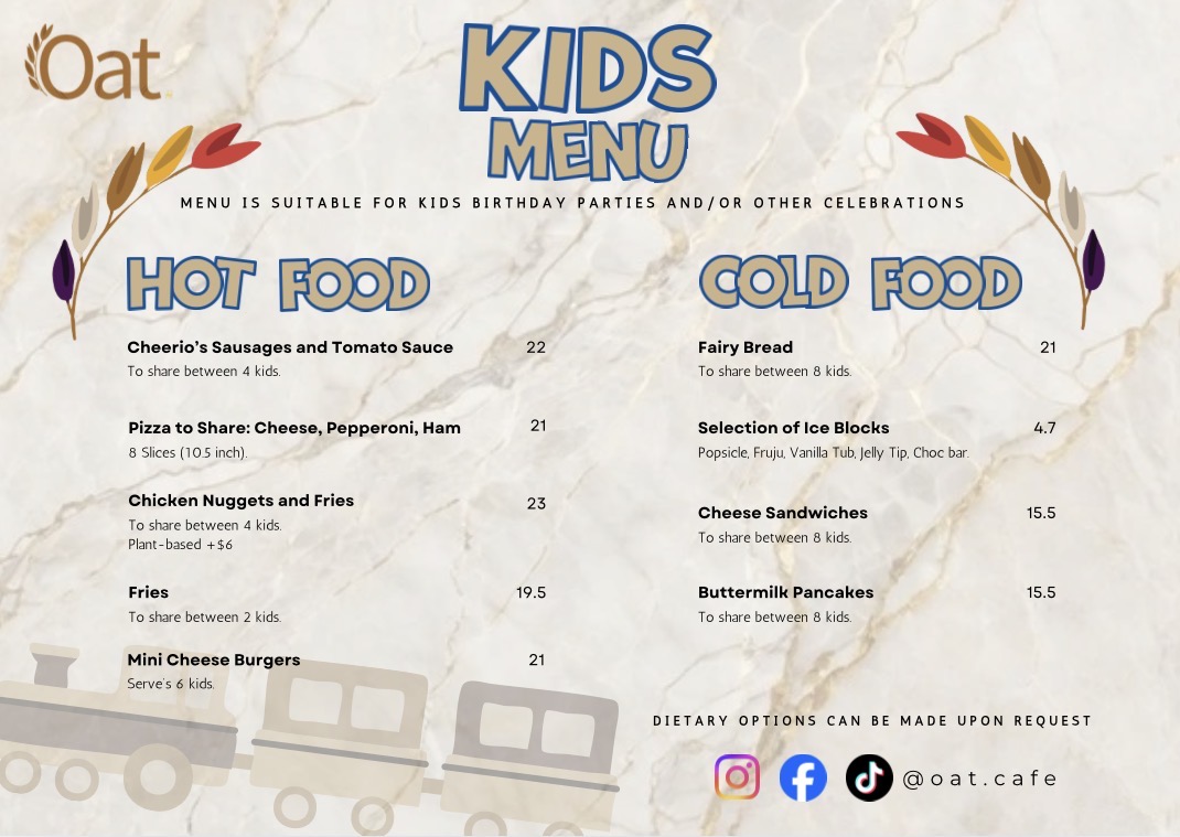 Oat Café is the perfect venue for kids parties. Our dedicated party packages offer a hassle-free way to host a fun-filled celebration, complete with delicious food, and plenty of smiles.